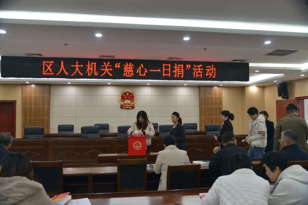 为进一步弘扬“崇慈向善、扶弱济困”的传统美德,11月7日,区人大常委会机关组织开展2025年“慈心一日捐”活动。区人大常委会党组成员、机关党组书记宋仁利带头捐款,干部职工积极响应、踊跃捐款用实际行动支持慈善事业。大家纷纷表示,将继续发扬爱心、践行善举、传递温情,为推动慈善事业发展、促进社会和谐贡献人大力量。