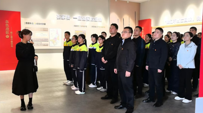 全体人员参观了纪念馆展厅,通过历史图片、实物展陈及文字解说,系统回顾张家楼抗日斗争历程,深入了解革命先烈英勇事迹。人大代表现场担任讲解员,结合展品向学生讲述抗战故事,将爱国主义教育融入历史场景,增强了教育的感染力与实效性。在庄严肃穆的烈士纪念碑前,人大代表、学生代表共同向纪念碑敬献花篮,全体人员肃立默哀、行三鞠躬礼。